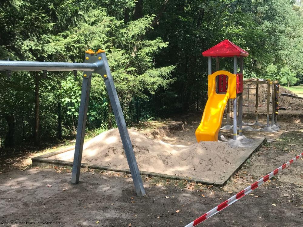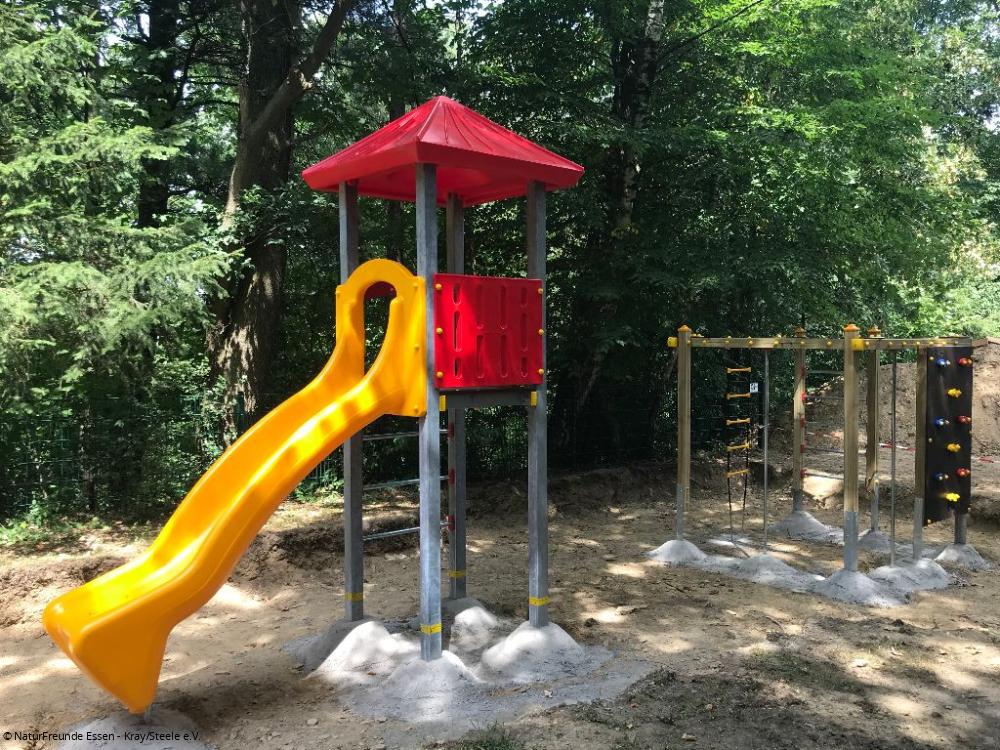 Mit Sparsamkeit und Kreativität haben die NaturFreunde Essen-Kray-Steele es geschafft, sich und ihren jungen Gästen einen großen Wunsch zu erfüllen: Im Juli 2018 haben sie am Naturfreundehaus Tönisheide (F9) endlich einen neuen Spielplatz eröffnet.